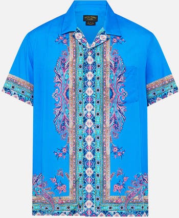 Inspired by the free roaming feeline guardians of Istanbul, the Footsteps In Folklore Short Sleeve Camp Collared Shirt is a handcrafted silhouette designed by our in house artisans. Reimagined in an exclusive limited edition print, our men's short sleeve shirt features a relaxed fit through the body and is elevated with a camp collar, side splits and front chest pocket.