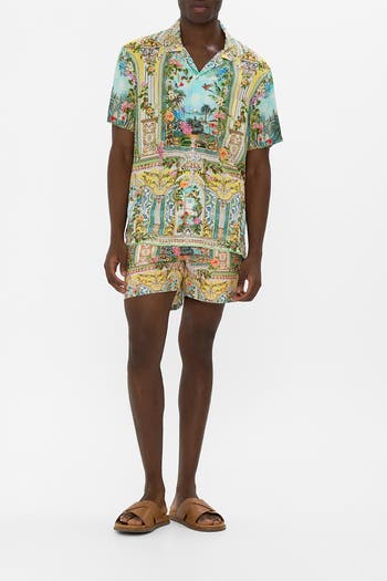 Inspired by the Topkapi Palace in Istanbul, the Tales Of Topkapi Palace Short Sleeve Camp Collared Shirt is a handcrafted silhouette designed by our in house artisans. Reimagined in an exclusive limited edition print, our men's short sleeve shirt features a relaxed fit through the body and is elevated with a camp collar, side splits and front chest pocket.