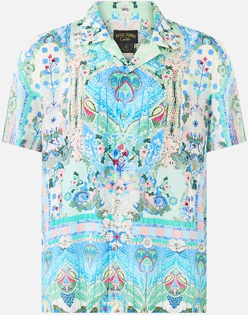 Inspired by Catalan Modernist architecture and the Spanish Nouveau movement, the Midsummer Mosaics Short Sleeve Camp Collared Shirt is a handcrafted shirt designed by our in-house artisans. Conceived in an exclusive limited edition print, our men's short sleeve shirt features a relaxed fit through the body and is elevated with a camp collar, side splits and front chest pocket.