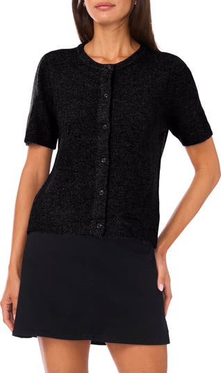 Add a bit of refined prep to your casual look with this cardi featuring a curve-skimming silhouette and short sleeves.