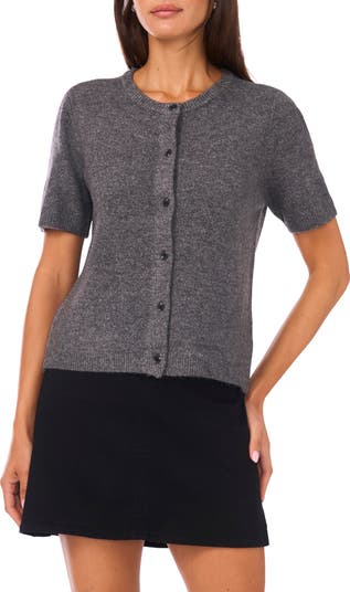 Add a bit of refined prep to your casual look with this cardi featuring a curve-skimming silhouette and short sleeves.