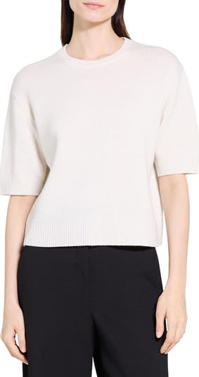 Slightly cropped with elongated short sleeves, this luxe cashmere sweater updates a classic look.