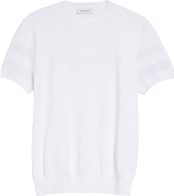 This fine-gauge cotton-blend sweater is subtly knit in Italy with a sheer mesh stitch striping the sleeves and forming the Givenchy logo across the chest.