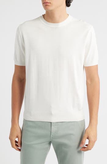 This short sleeve sweater boasts a fine-gauge cotton knit that's tipped at the finely ribbed neck for an exalted take on a classic.