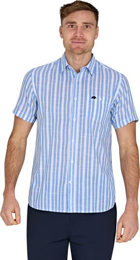 Add this Short Sleeve Cotton Linen Look Shirt to your summer wardrobe. Tailored with a classic fit, this full-length button-down shirt is made from high-quality cotton blend material, ensuring both style and durability. Featuring a classic thin stripe pattern, this lightweight shirt is perfect for both smart and casual occasions.