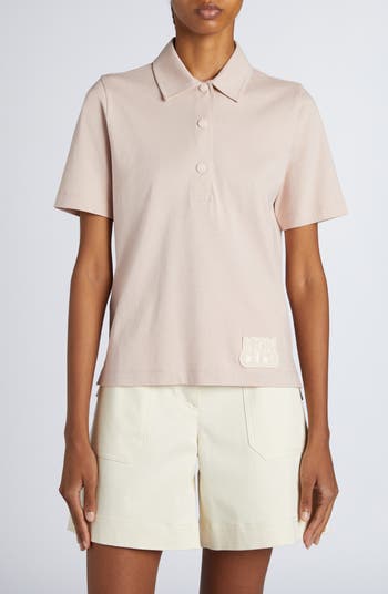 Moncler adopts a playful take on the classic polo in this logo-embellished version reimagined with a snap half placket.
