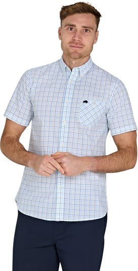 This Short Sleeve Pentagon Pattern Poplin Shirt for men is a stylish and classic fit, made with high quality cotton for maximum comfort. Its subtle blue and white pattern sits with the buttoned collar and cuffed sleeves to provide a soft and hardwearing design for long-lasting wear. Versatile for both smart and casual looks, with contrast stitch embroidered RB logo on chest for a signature finish.