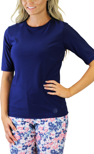 Elevate your beach and pool experience with our women’s short sleeve crew swim shirts, featuring a relaxed fit, flatlock seams, chlorine and saltwater resistance, and certified UPF 50+ protection.