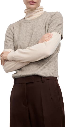 A classic crewneck tops this short-sleeve sweater knit from a luxurious yarn that's blended with wool for elevated everyday elegance.