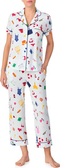Sweeten your bedtime routine with this soft modal-blend pajama set framed by smooth satin piping and brightened by whimsical prints.