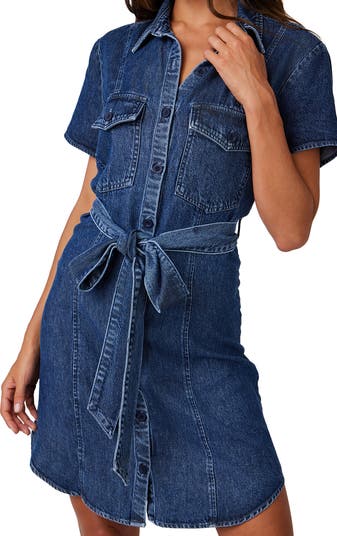Do denim and dress day in one with a short-sleeved option cinched with a simple sash and turned to a perfect fade.