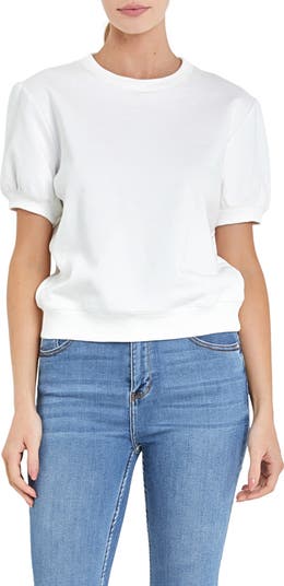Short puff sleeves update a cotton-rich French terry sweatshirt for a look that leaves the gym far behind.