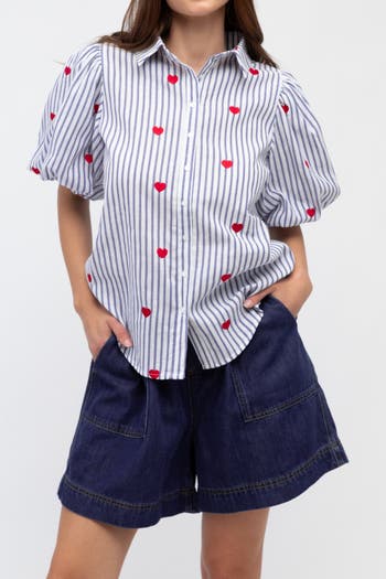 Transition to the new season with this heart embroidered short sleeve shirt. Wear to the office, on weekends, or your next adventure! This shirt is 100% cotton and sure to make you look and feel wonderful.
