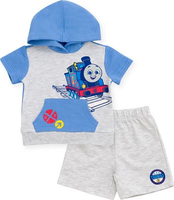 Journey to the island of Sodor and get ready for an adventure with your kid's favorite blue steam engine in this cute and comfy Thomas and Friends outfit! This adorable short sleeve hooded tee and shorts set features vibrant artwork of Thomas the Tank Engine that your little train enthusiast will love to wear! Made of a soft material that keeps your child comfortable, this Thomas clothing set is the perfect outfit for a day of fun and play! (c) 2024 HIT Entertainment Limited. HIT and the HIT logo are trademarks of HIT Entertainment Limited.