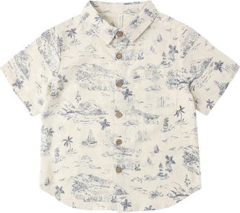 Coastal-inspired motifs bring a playful seaside feel to this linen-blend shirt designed for your tiny tot's warm-weather outings.