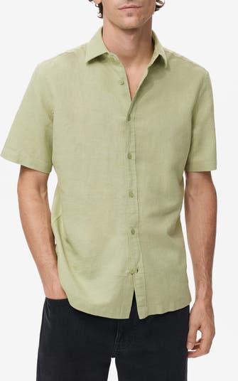 This button-up shirt is ready for warm weather with its short sleeves, classic fit and breathable blend of linen and cotton.