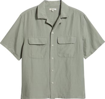 Soft, drapey lyocell with natural antimicrobial properties is blended with airy linen on this relaxed-fit button-up shirt designed with a casual convertible collar and utility-style flap pockets.