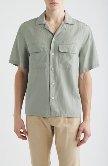 Soft, drapey lyocell with natural antimicrobial properties is blended with airy linen on this relaxed-fit button-up shirt designed with a casual convertible collar and utility-style flap pockets.