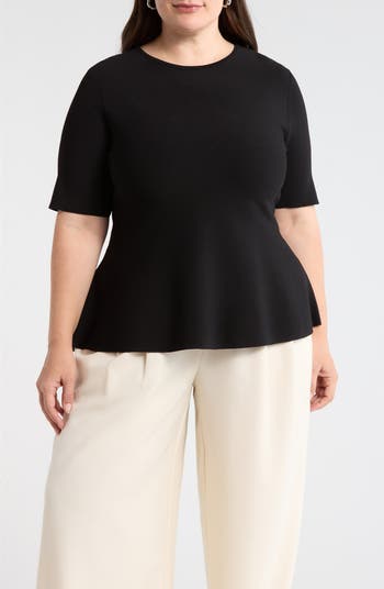 A fluttery peplum enhances the everyday charm of this soft cotton sweater framed with short sleeves.