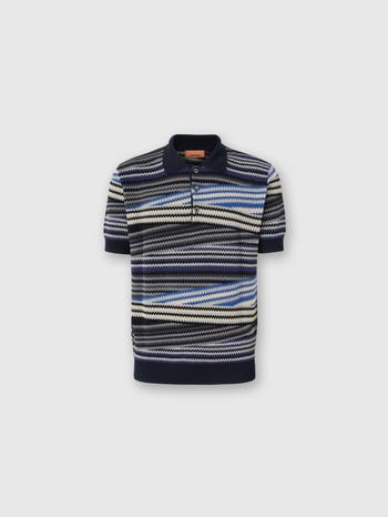 Short Sleeve Polo With Buttons And Striped Zigzag Pattern