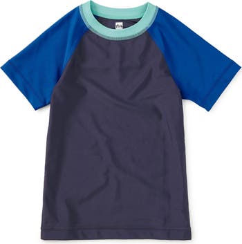 Designed for sunny days and nonstop play, this Short Sleeve Rash Guard offers UPF 50+ sun protection with a lightweight, athletic feel. A bold color-block design adds a sporty look to a fitted silhouette with short raglan sleeves that allow for easy movement and help cut down on messy sunscreen during busy swim days. Crafted with recycled materials and lined at the front bodice for added comfort, it's made to be worn often and enjoyed all season long. Pair with our swim trunks or bikini bottoms for easy, mix-and-match coverage.