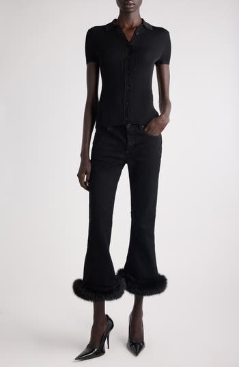 Taking the familiar polo silhouette as its starting point, this ribbed-to-fit top runs with a full-button design that reads more fashion-forward than weekend casual. The collar is finished with tonal embroidery that lands like a quiet tag to add edge without breaking the polished sport mood.