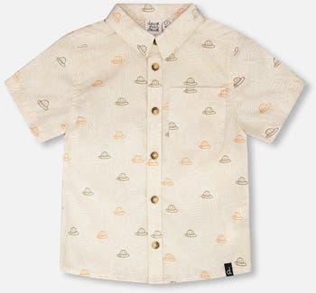 Crafted in soft cotton, our poplin shirt in beige with safari print is perfect for summer adventures. This short-sleeve button-up shirt features a neat collar, a chest pocket, and a playful safari-inspired allover print with safari hats. Light and breathable, it’s ideal for pairing with shorts or pants from the same “Trail Buddies” collection.