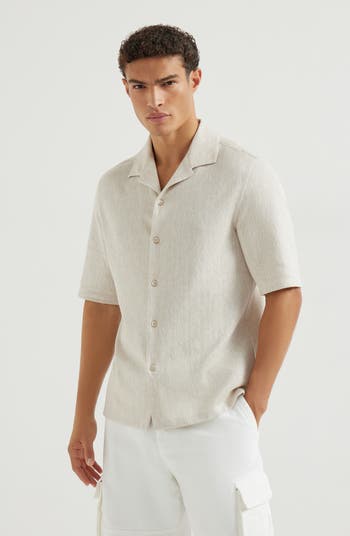- Plain front closure with mother of pearl buttonsCamp collarRegular fit