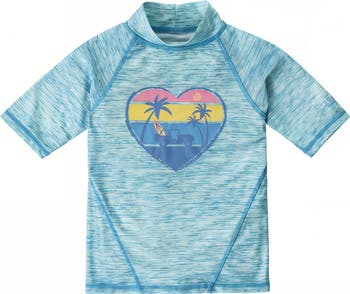 Our girl's short sleeve sport sun and swim shirt offers all-day sun safety with quick-drying, 4-way stretch fabric that is chlorine and saltwater resistant and provides lasting UPF 50+ protection for active little adventurers.