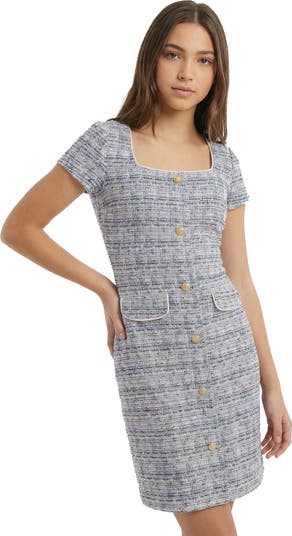 Short Sleeve Stretch Boucle Dress