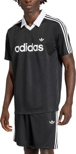 Bold 3-Stripes race up the sleeves and across the shoulders of a soccer jersey made entirely of recycled fibers that add a smart kick to your sporty style game. Tonal stripes in the fabric and a crisp open collar add winning points whether you're playing on the pitch or relaxing on the sidelines.