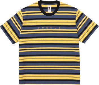 - An original jersey knit multi-stripe fabric using 20-count open-end spun in double yarns, knitted with gradual changes in texture