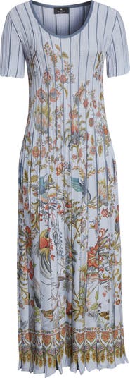 Variegated ribbing creates the illusion of pleating across this short-sleeved sweater-dress covered in a botanical-inspired pattern with house-signature paisley.