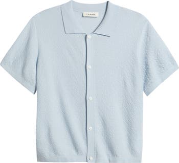 A dimensional knit made of wool brings breathable comfort to this short-sleeve cardigan topped with a smart collar.