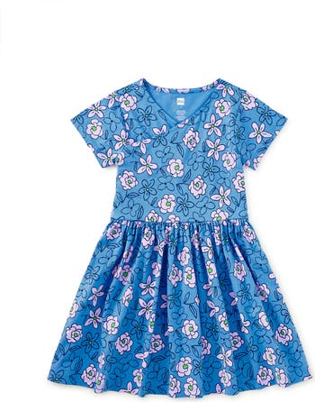 An everyday favorite with timeless appeal. This Short Sleeve Wrap Neck Dress features an artist-painted floral print, created in-house to bring color and charm to a classic, easy-to-wear silhouette. Thoughtfully made for comfort and movement, it's designed to be worn often, washed well, and loved long enough to pass along. Crafted of soft 100% cotton jersey, it features a wrap neckline, short sleeves, and a gently gathered skirt for extra twirl. Pair with leggings or Somersault Shorts for play-all-day versatility.