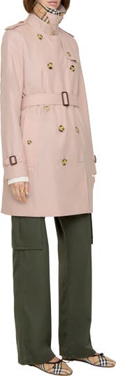 Marking 170 years of Burberry, our timeless Kensington trench coat is refreshed in a lighter weight. The double-breasted silhouette is crafted from shower-resistant tropical gabardine – the lightest of our signature fabrics, developed for warmer climates. Tailored to a regular fit with a structured shoulder, added ease through the body allows for effortless layering. Wear it belted or open to showcase the iconic Burberry Check lining.