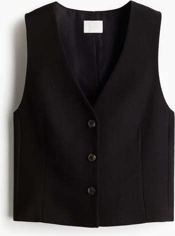 Short, fitted waistcoat in woven fabric with a deep V-neckline and buttons down the front. Shaping darts at the front for a figure-hugging silhouette. Lined.