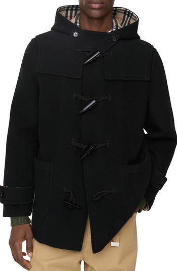 A duffle coat made in Italy from double-faced wool twill with a Burberry Check inner in signature sand beige. The hooded style is cut to a relaxed fit and features logo-engraved toggles in the shape of our B shield, a motif inspired by the Equestrian Knight Design.||Button and toggle closure|Throat latch|Side patch pockets|Button-tab cuffs|Burberry Check inner|Comes with a garment bag