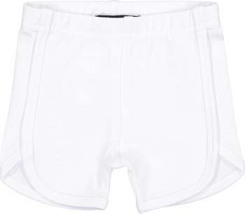 White shorts with a relaxed fit, featuring an elastic waistband and ribbed knit fabric for comfort and style.