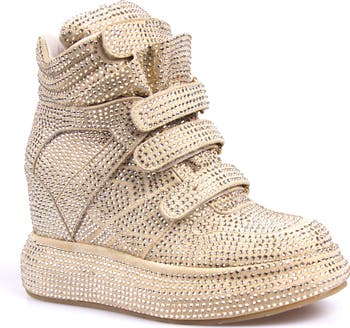 Sneaker meets boot in this crystal-drenched style shaped by a tall hidden wedge and topped with adjustable straps.