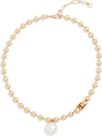 A cultured pearl provides a sophisticated focal point for this polished ball-chain collar necklace.