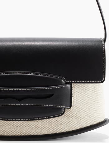 Shoulder bag with a flap and an adjustable shoulder strap. Small, open inner compartment. Lined.