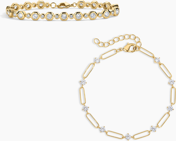 Love it More, With Layers We’re screaming over this stack. The Showgirl’s crystal-accented paperclip links pair with the Trust Fund XL’s alternating bezel-set stones, bringing shine and dimension to your wrist.