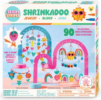 Your future designer will have endless fun creating their own jewelry and charms with this kit of shrinkable art. An assortment of 90 precut pieces, markers, chains and colors allow kids to create whatever shape they want before shrinking and turning them into wearable art.