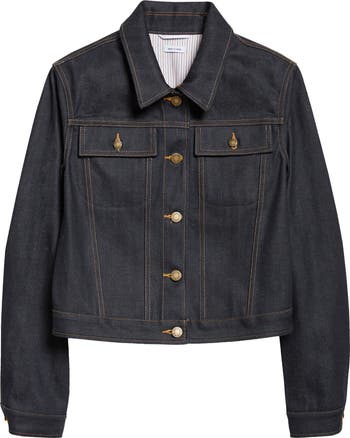 A showcase of Thom's impeccable tailoring, this shrunken jacket cut from indigo-dyed denim is detailed with off-white weft yarns that produce softer, warmer tones beneath the rinse.