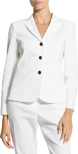 Made from a soft stretch-linen blend, this clean-white blazer is made in a tailored three-button silhouette.