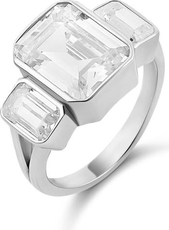 Light up your finger with this statement ring that sparkles with a trio of emerald-cut cubic zirconia.