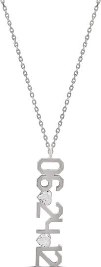 Forever highlight your special day with this hand-polished date pendant necklace punctuated with heart-shaped cubic zirconia.