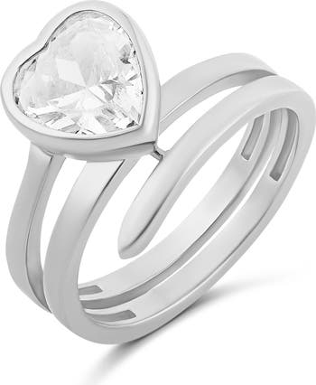 Wrap yourself in romance and shine with this spiral-silhouette ring punctuated by a sparkly heart-cut cubic ziroconia.