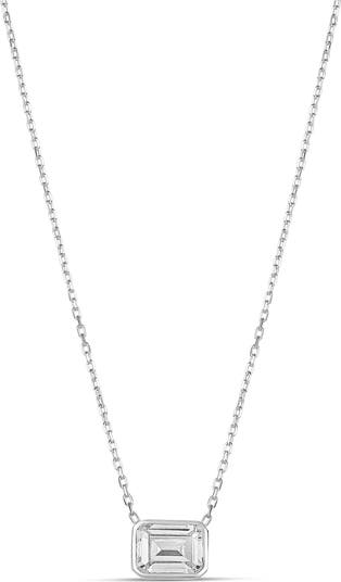 A solitaire cubic zirconia fills a heart-shaped bezel in this romantic pendant necklace.